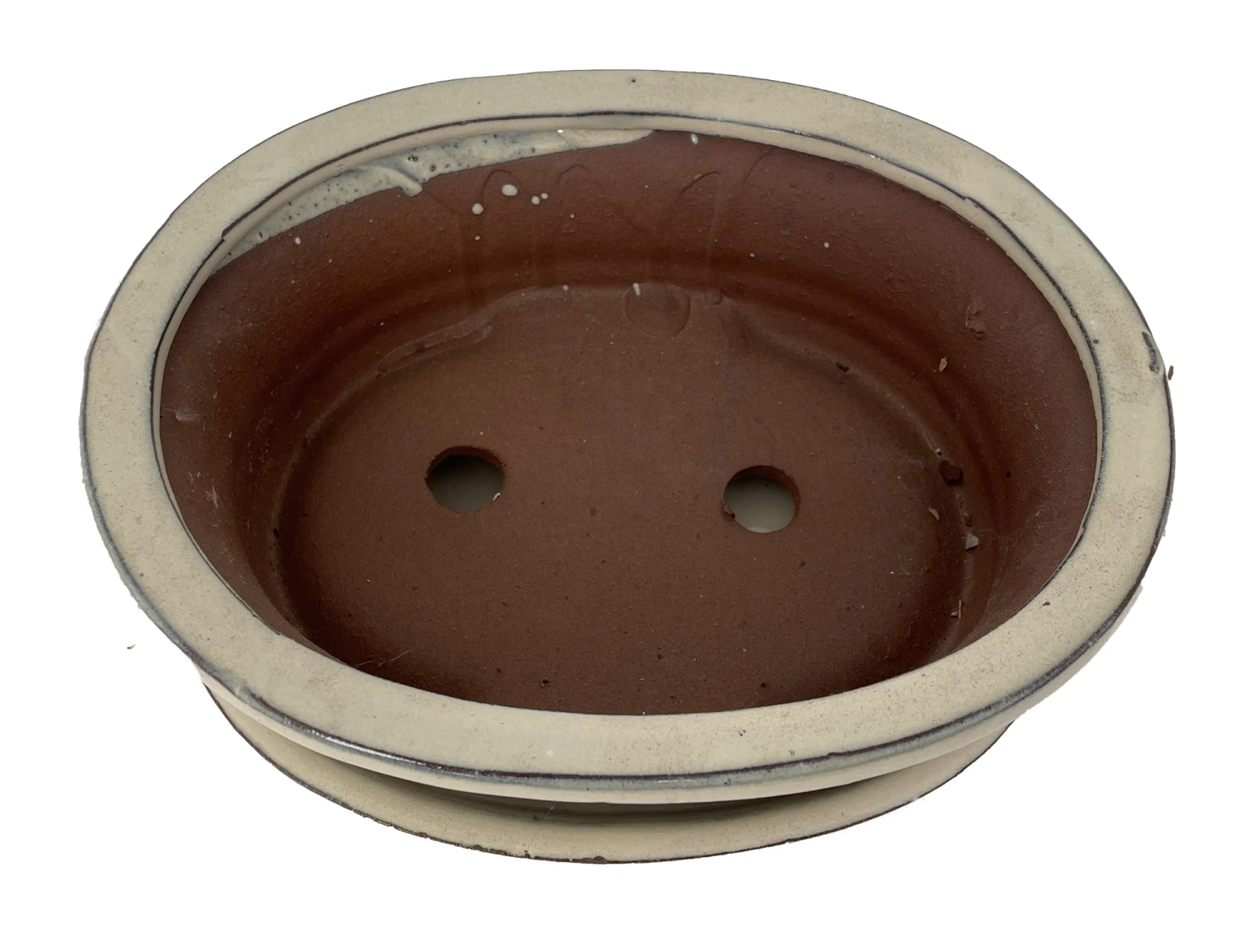 Ceramic Bonsai Pot With Saucer – Beige Oval – 8″ X 6.25″ X 3″